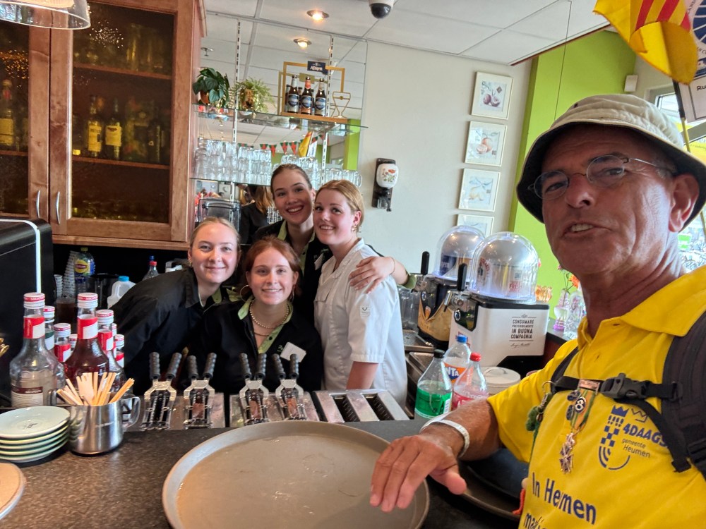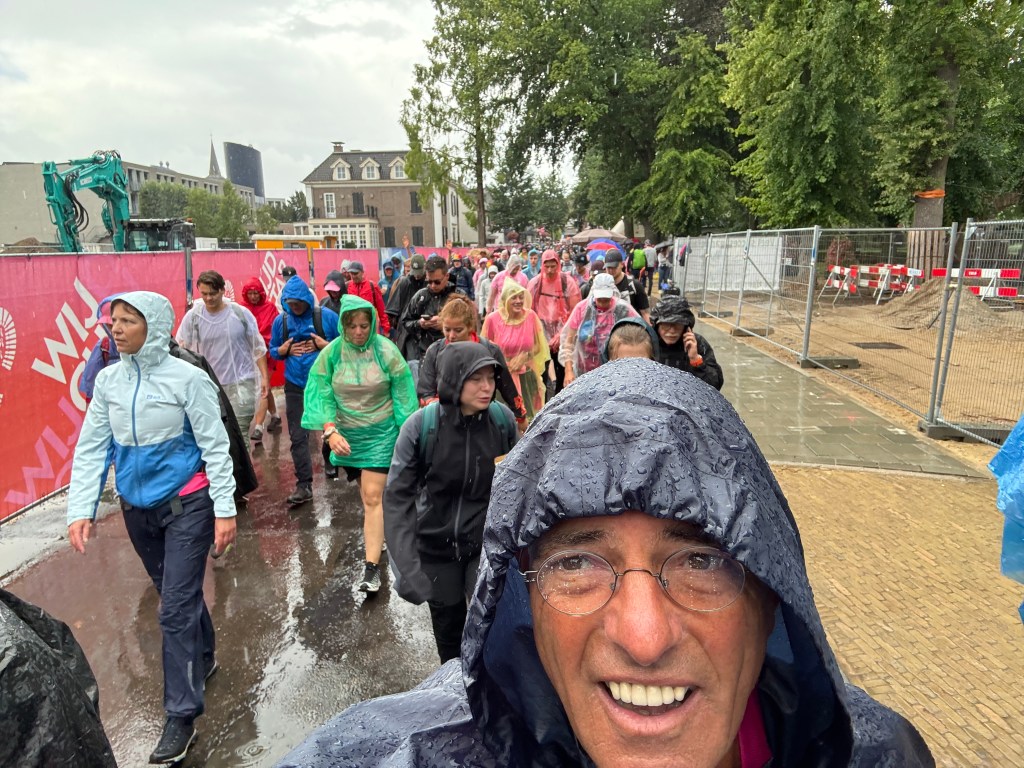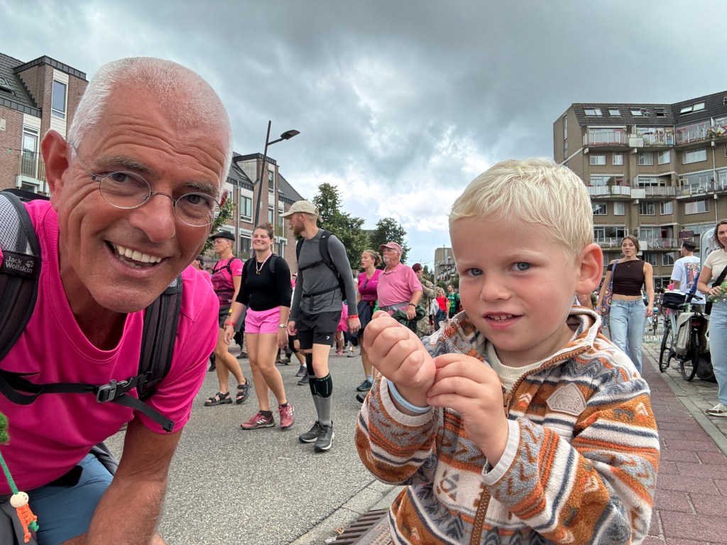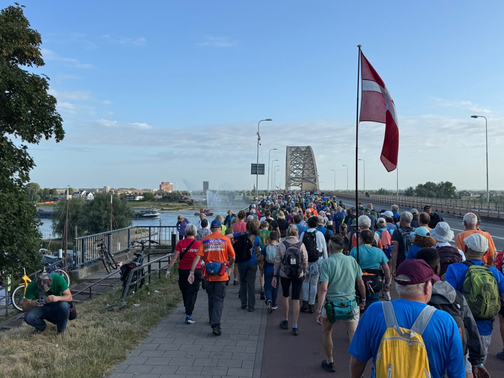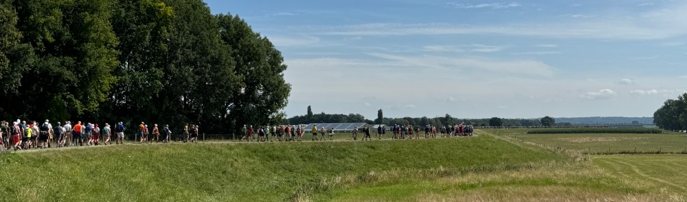 Wat was dat weer een enerverende wandelweek! En de Vierdaagse is alweer voorbij! 🥾 We hadden op een paar pittige buien na prachtig wandelweer, de gladiolen zaten weer in mijn rugzak en mijn voeten waren na 3 dagen ‘goed ingelopen’. Deze 10de keer is een fantastische herinnering geworden! Ik merk dit jaar – waarin ik 70 ben geworden – wél bij het wandelen dat de leeftijd gaat meetellen. Het wandeltempo is wat trager, toch doen de voeten helaas net zoveel pijn als voorheen. Elke stap voel je dus goed en doorleef je zodoende. Dat is denk ik wel het summum van ‘het leven in het hier en nu’. Haha 😅 Dit jaar had ik voor de allereerste keer 0 blaren! Alleen wat rauwe voeten en vermoeide spieren. En na de eerste kilometers wandelen weet ik: ‘dít is het voor deze week en het wordt niet erger’. Gewoon doorbikkelen en dan komt de finish vanzelf elke dag weer in het zicht. Vanaf vrijdagavond is alles in de ruststand gegaan en kan ik nagenieten van een heerlijke wandelweek! Gedurende de hele week zag ik talloze mensen met een lach op het gezicht. Met zoveel nationaliteiten waren we bij elkaar en dat zonder wanklanken! Kon het in de echte wereld ook maar zo zijn!