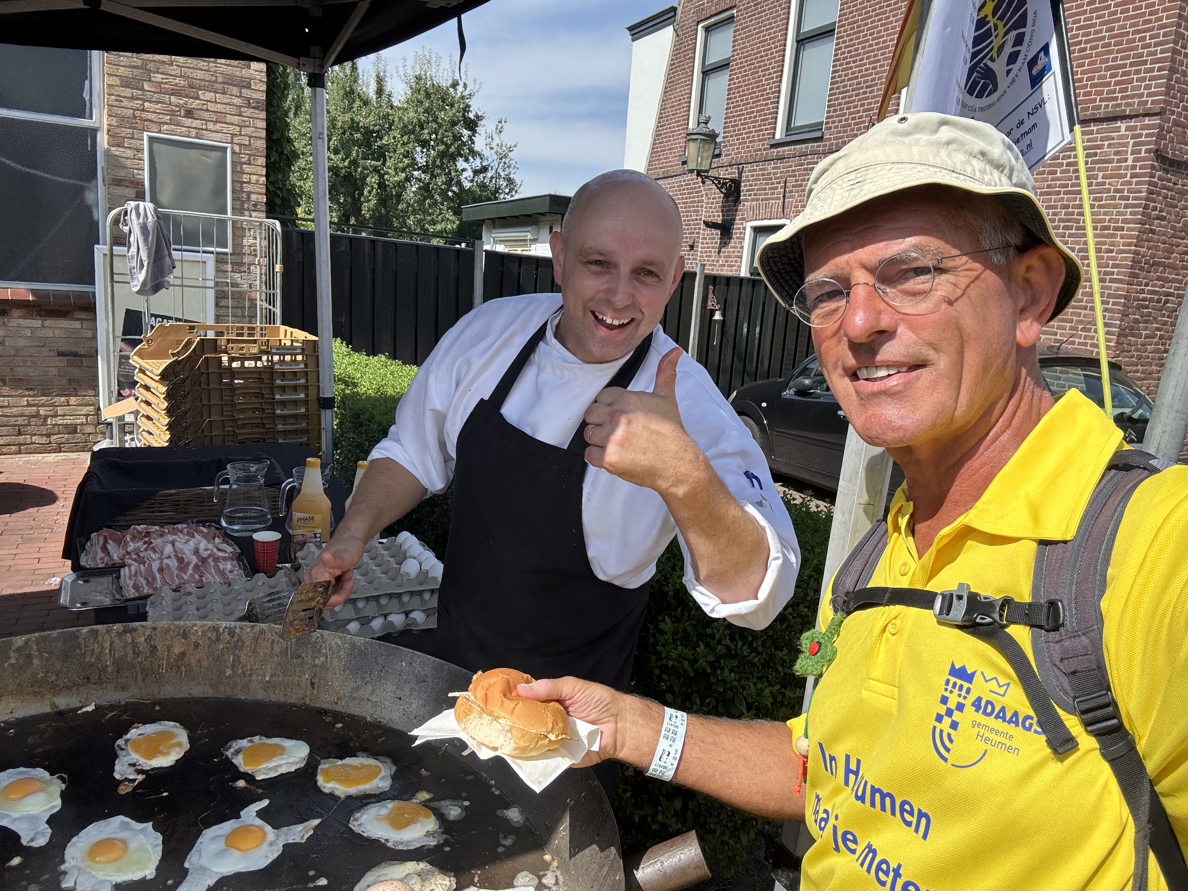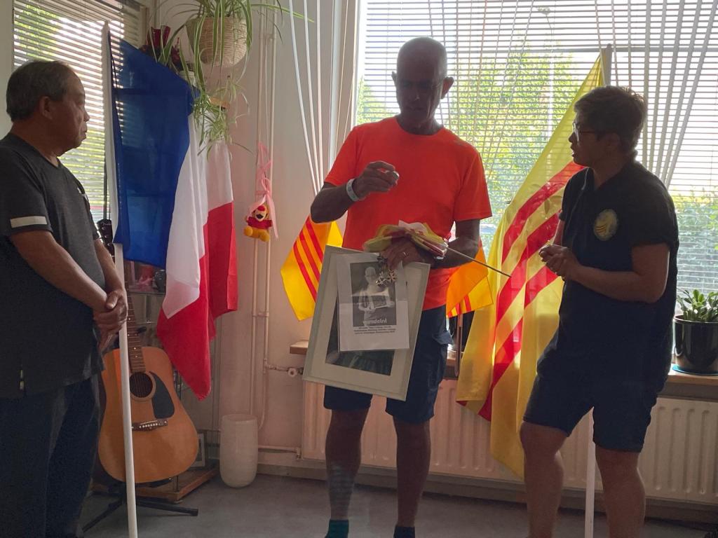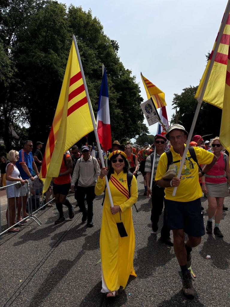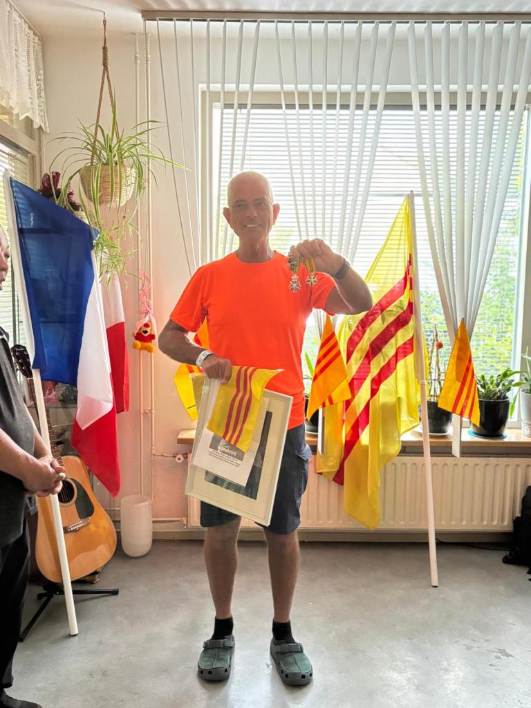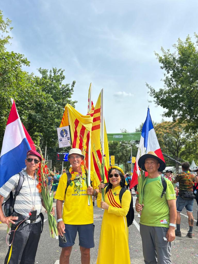 Onderweg spraken nogal wat wandelaars mij aan vanwege de Vietnamese vlag (geel met 3 rode banen) waar ik altijd mee loop om ook de Vierdaagse Sponsorloop voor de NSVL te promoten. Soms een reactie van een ‘vlaggengek’ die meteen de oude Vietnamese vlag van voor 1975 herkende. Meestal gaat het gesprek over mijn betrokkenheid als ‘kaaskop’ bij het geweldige werk van de NSVL. Soms werd onderweg de QR-code gescand en de website www.lavang.nl opgeschreven om later nog eens alles na te kunnen lezen!