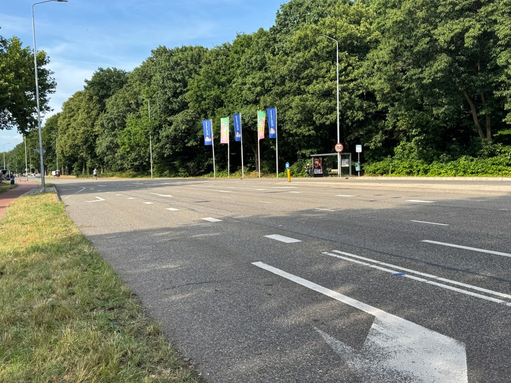 Op weg naar Malden over de Hatertseweg voor een van de 10.000 gratis pannenkoekjes van de ‘Pannenkoekenbakkers Fam. Janssen & Co’