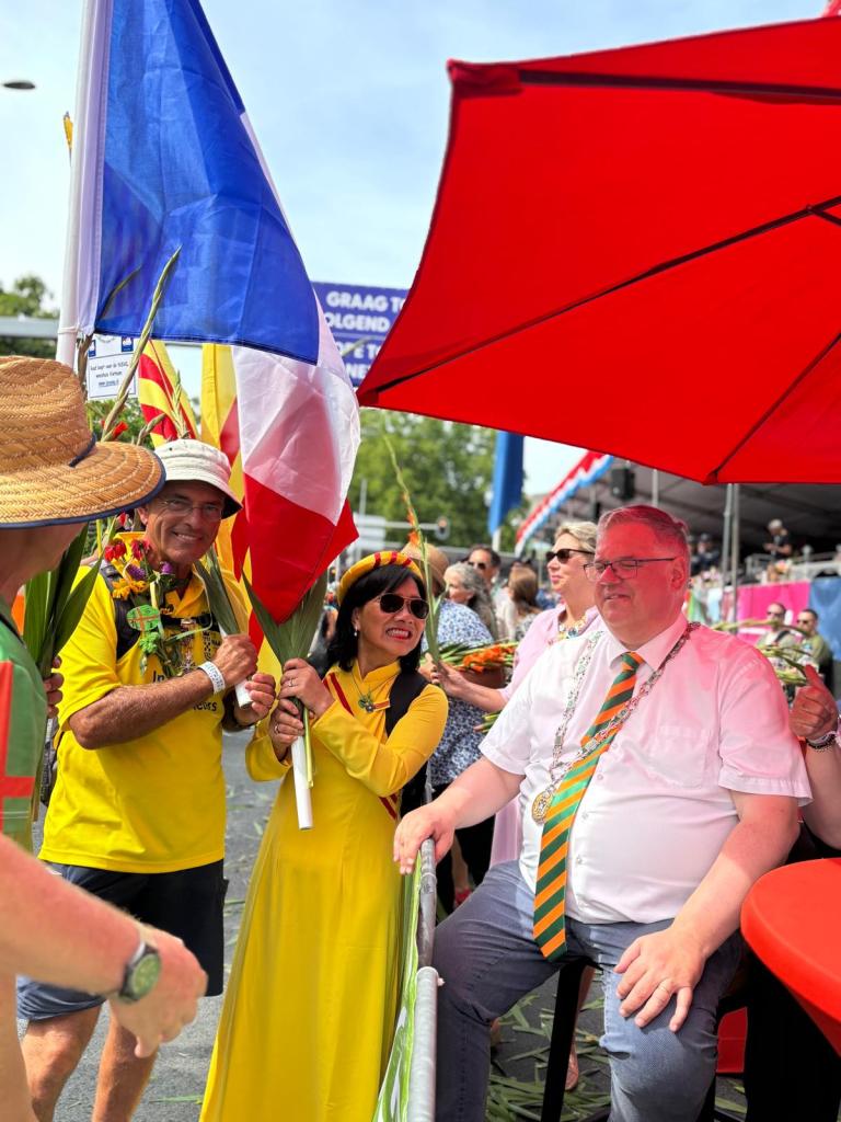De Vietnamese delegatie kreeg een mooie toespraak van marsleider Henny Sackers en een warm welkom van burgmeester Hubert Bruls!
